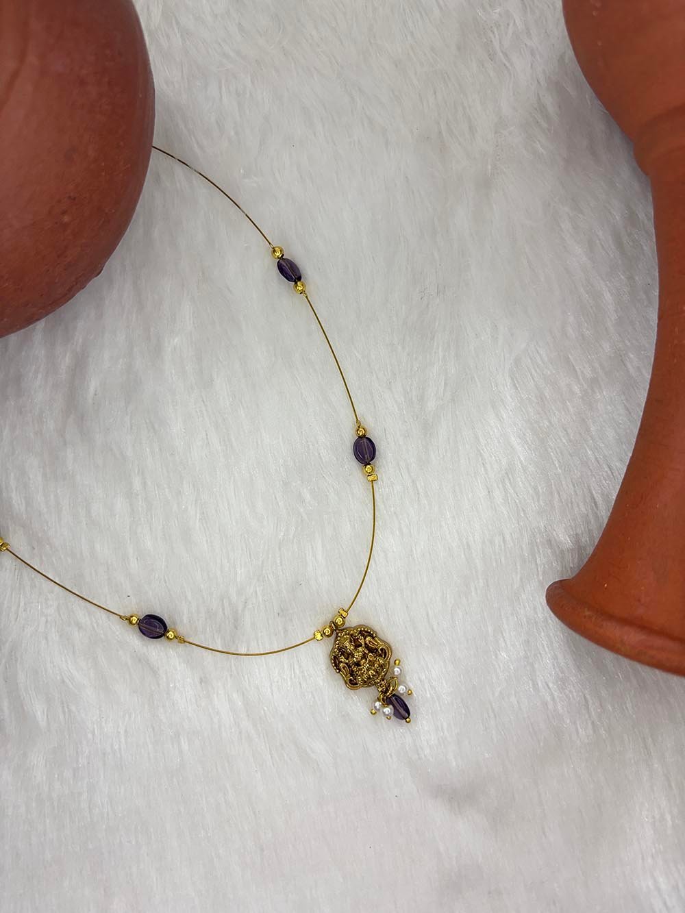 Invisible chain . Invisible lakshmi pendant with Purple beeds