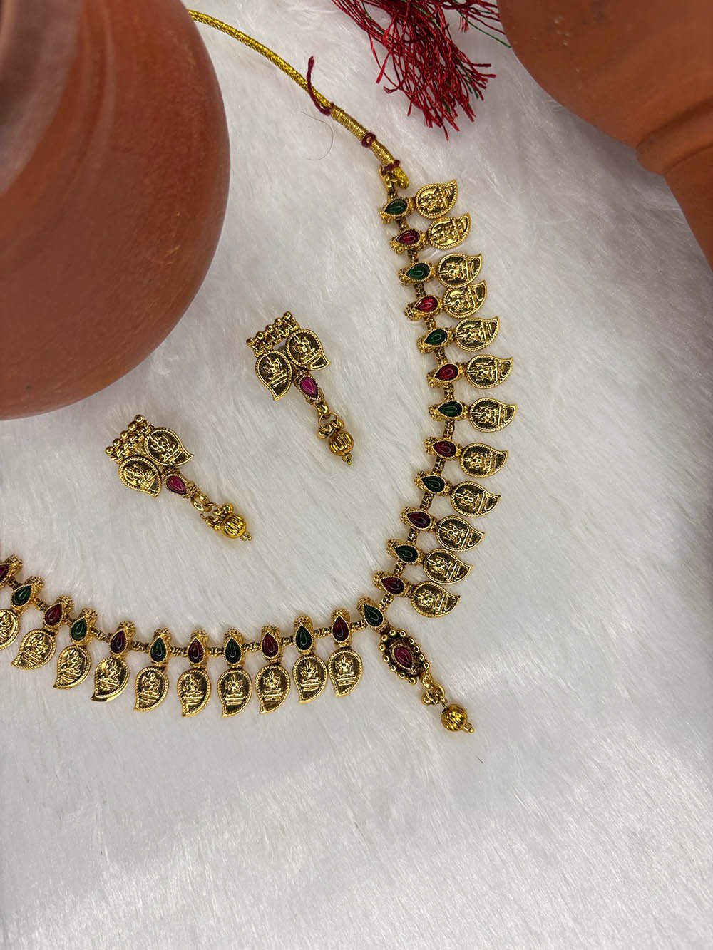 Premium quality Lakshmi manga necklace with ear stud.