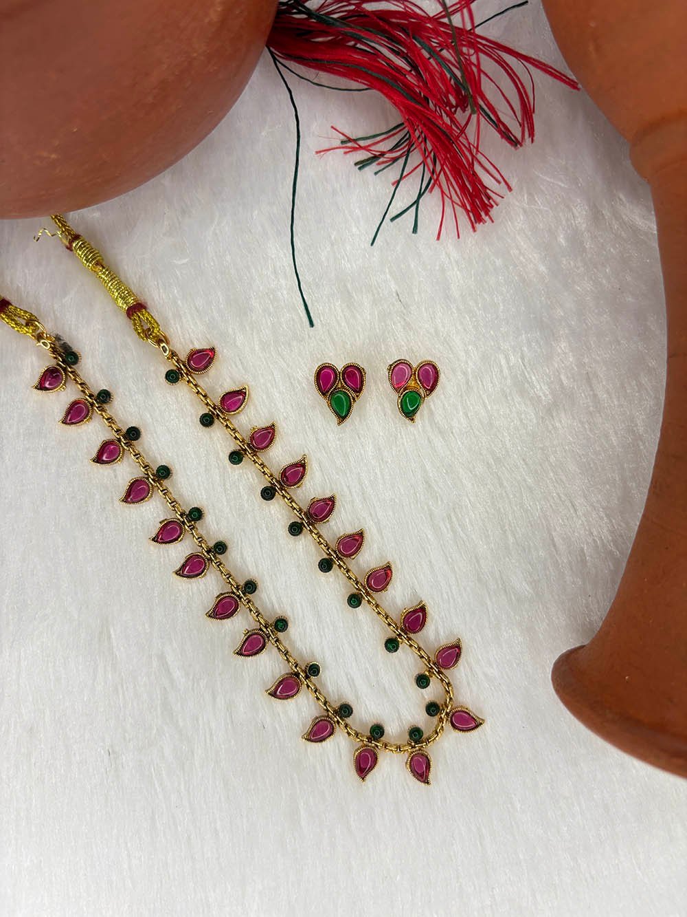 Manga Designed Necklace. Manga designed necklace with Ruby emerald stones with simple earstuds