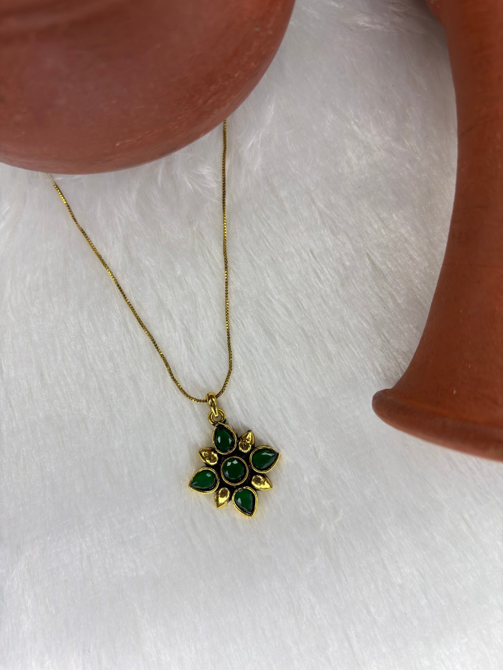 simple golden chain with flower pendant.